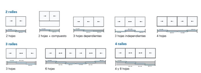 - Dimensiones máximas: Hasta L 4 ,30 m x H 2 ,60 m. Balconera 2 hojas 2 raíles.